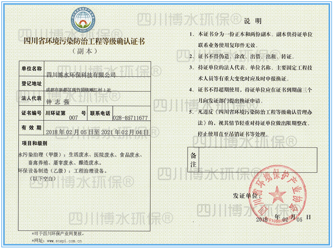 博水環(huán)保榮獲水污染處理甲級(jí)證書(shū)
