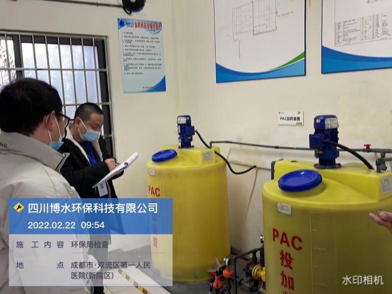 2022年2月21日-23日,環保局臨檢四川博水環保運維項目:雙流區第一人民醫院(新院區)!