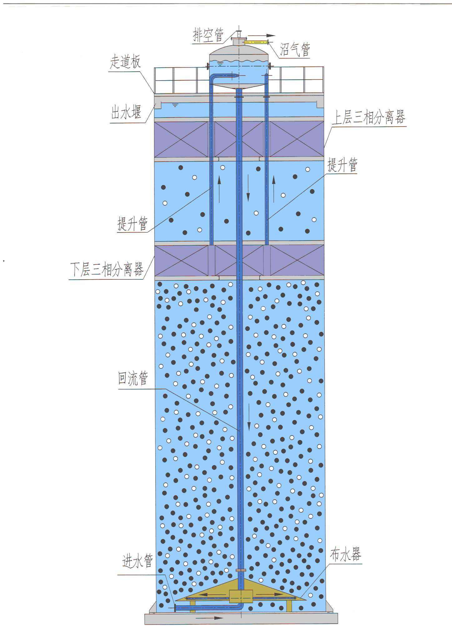 USAB反應器的主體部分主要分為兩個區域,即反應區和三相分離區。其中反應區為USAB反應器的工作主體。