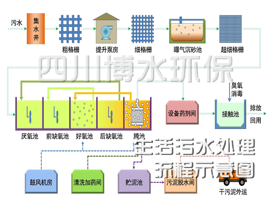 好氧池、MBR 膜組件、消毒設備、設備間等,配套設備包括風機、泵、