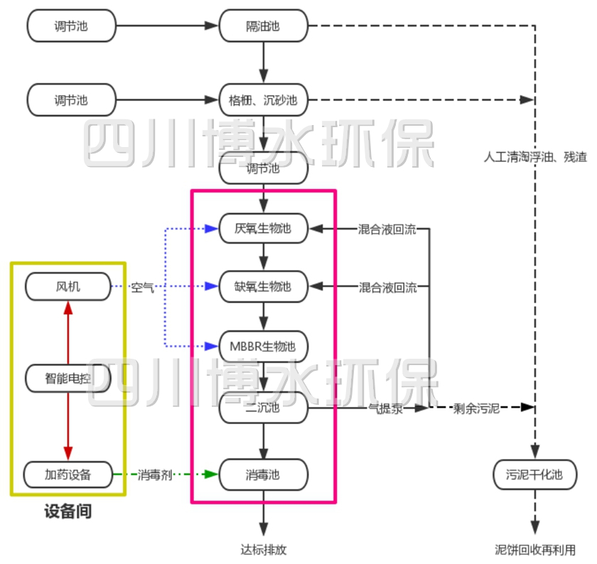 5 MBBR生物池:MBBR又稱為移動床生物膜反應器,是一種基于特殊結構載體的生物膜工藝,以生物膜工藝原理為基礎,
